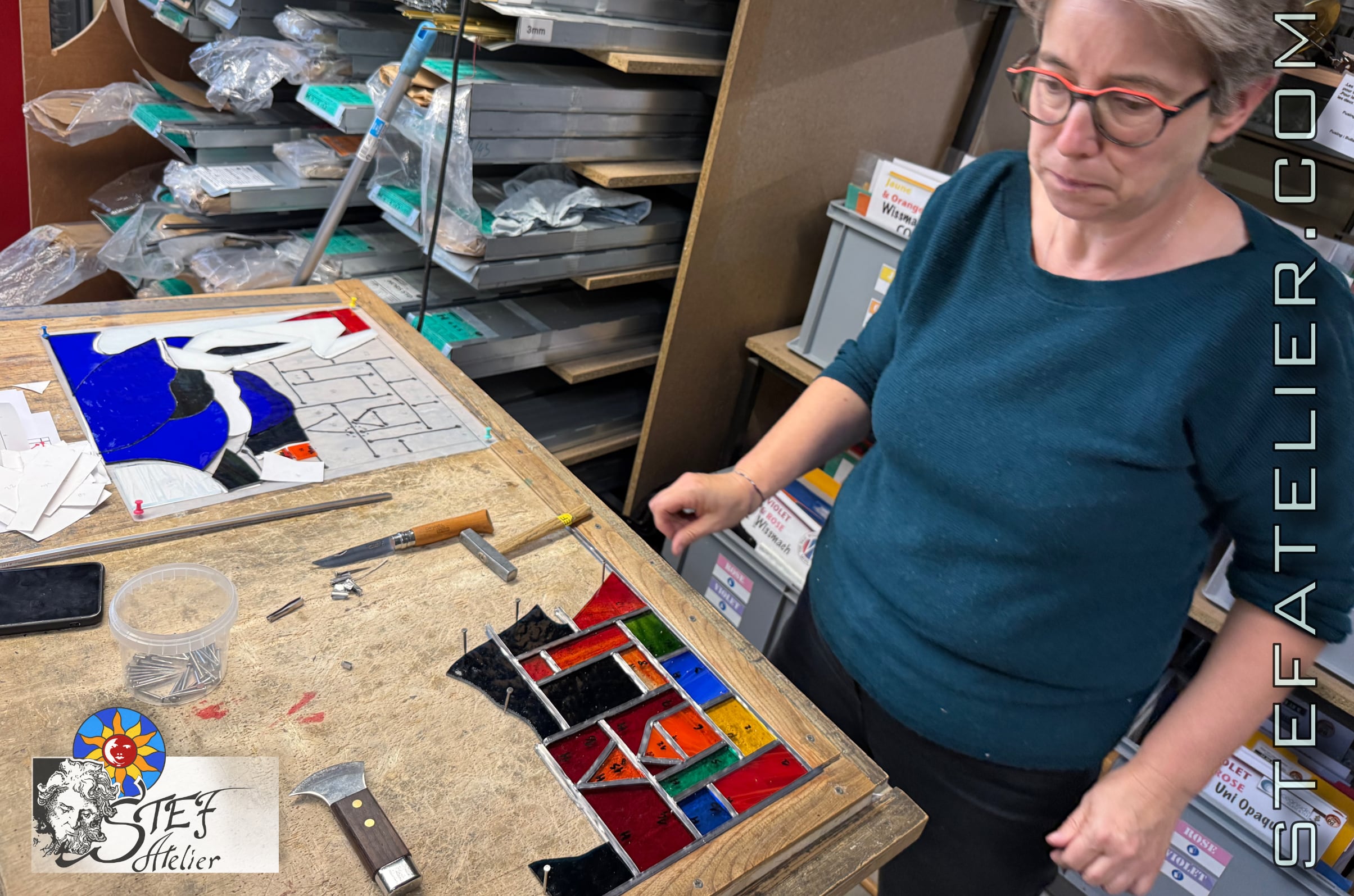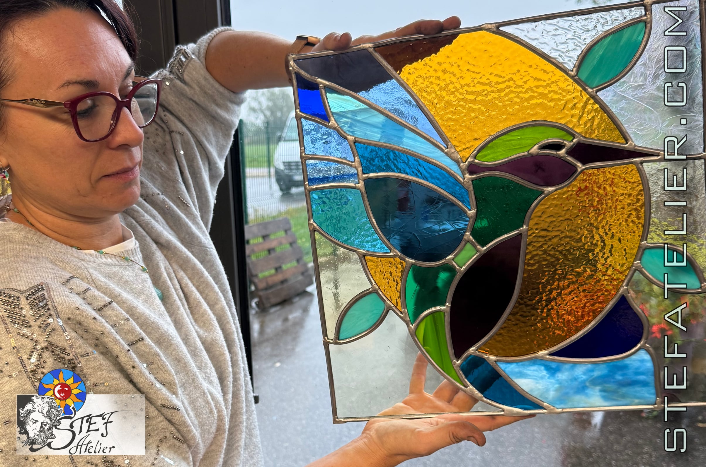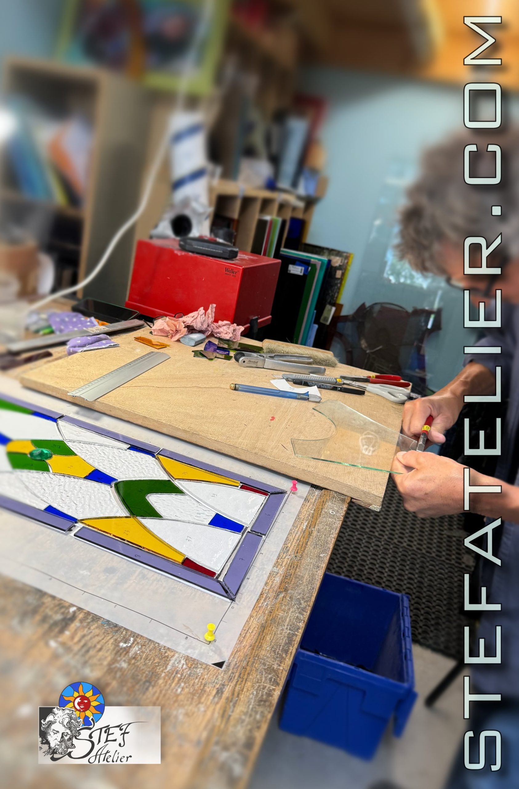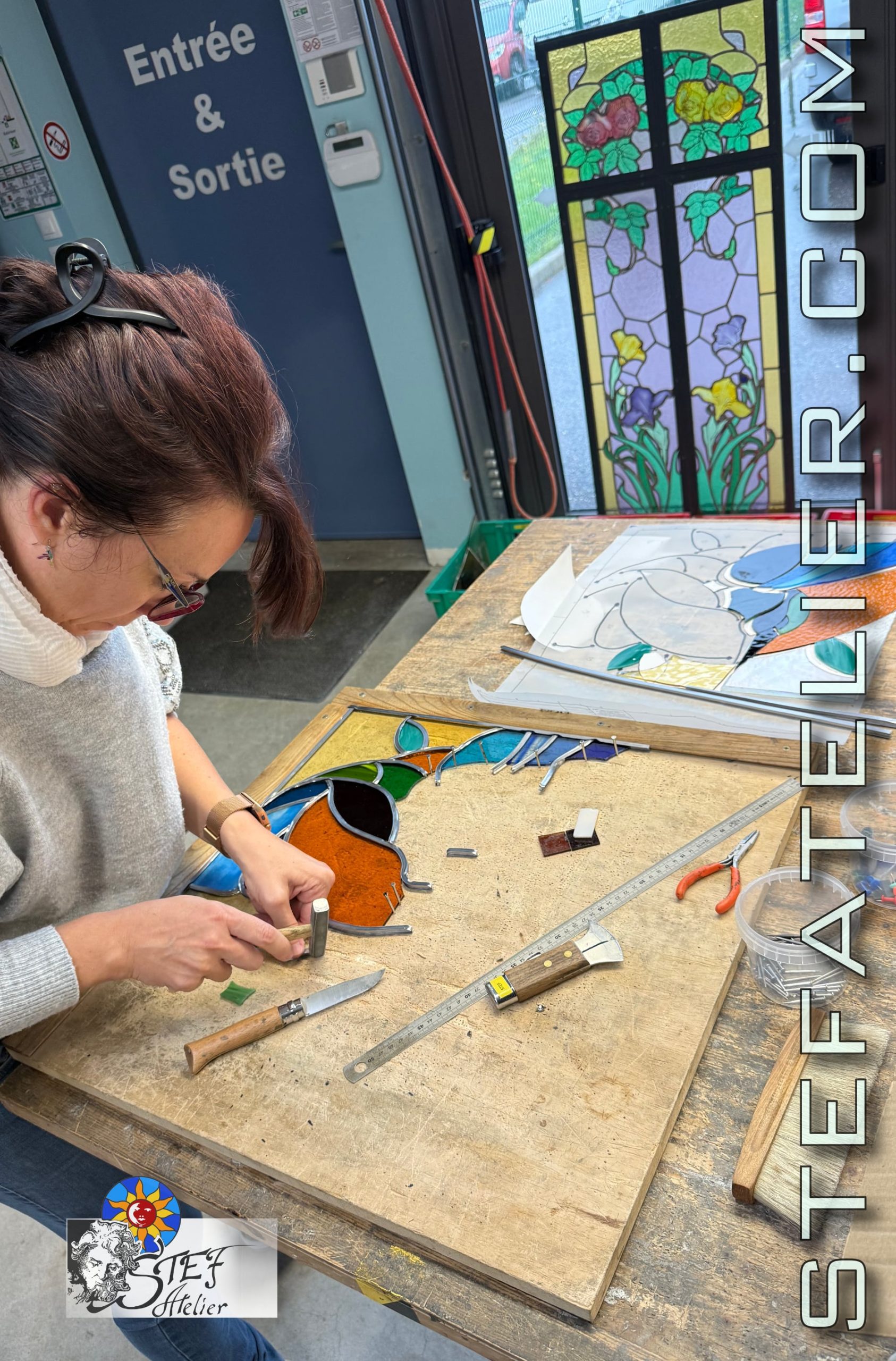 Plongez dans l’art du vitrail : durant nos stages, vous imaginez et esquissez votre création, découpez vos verres colorés, puis leur donnez vie en les assemblant au plomb.