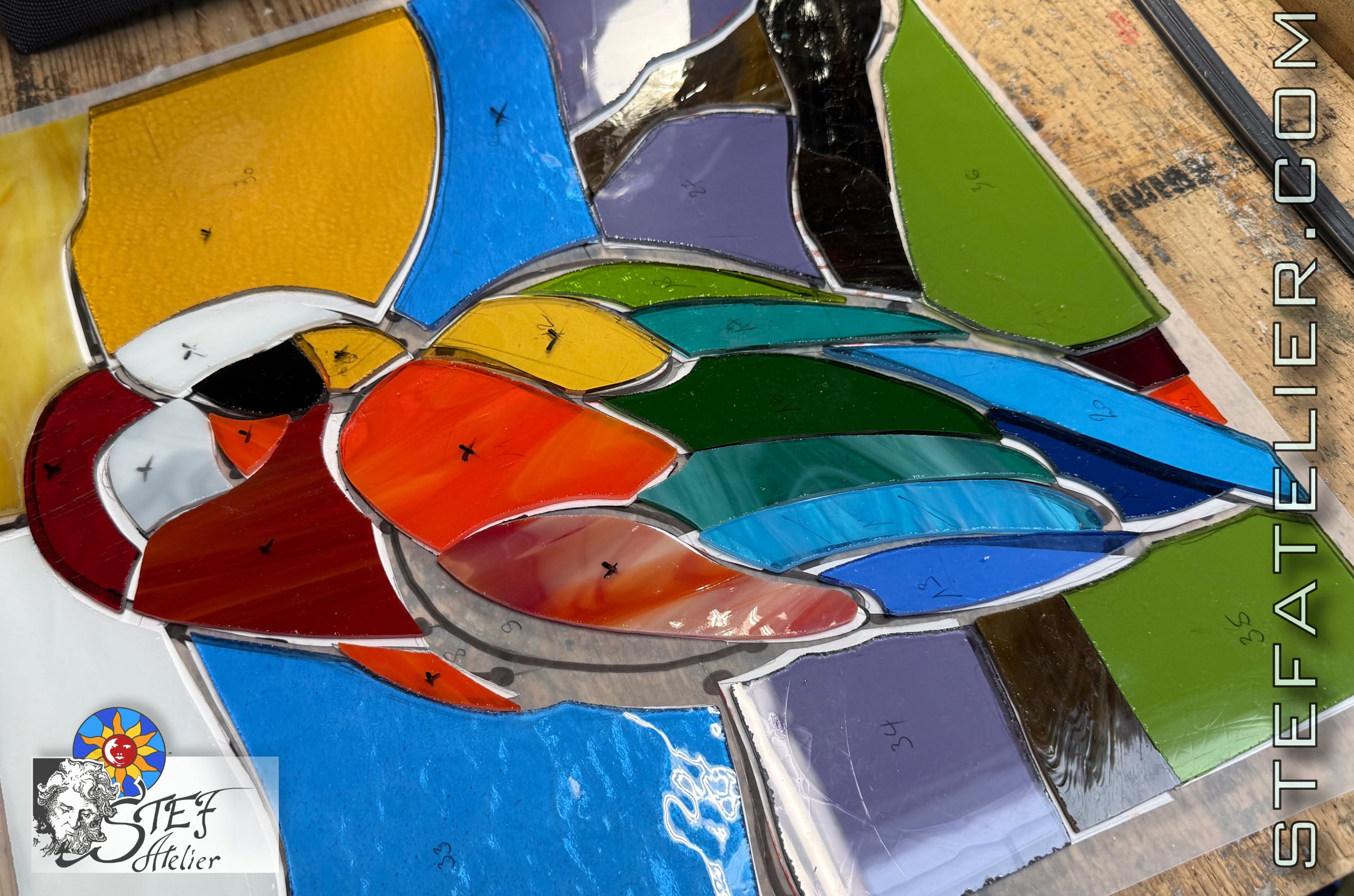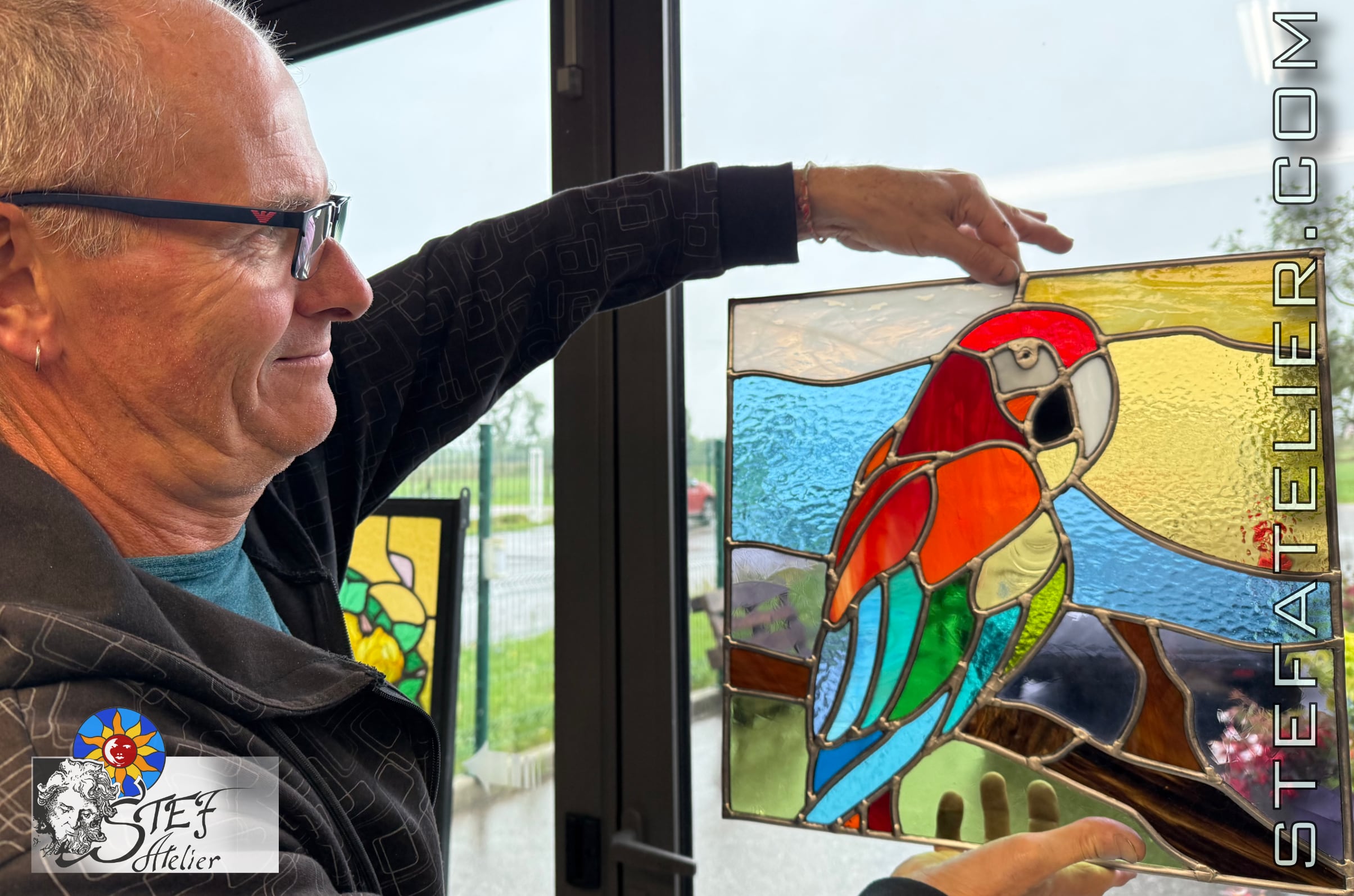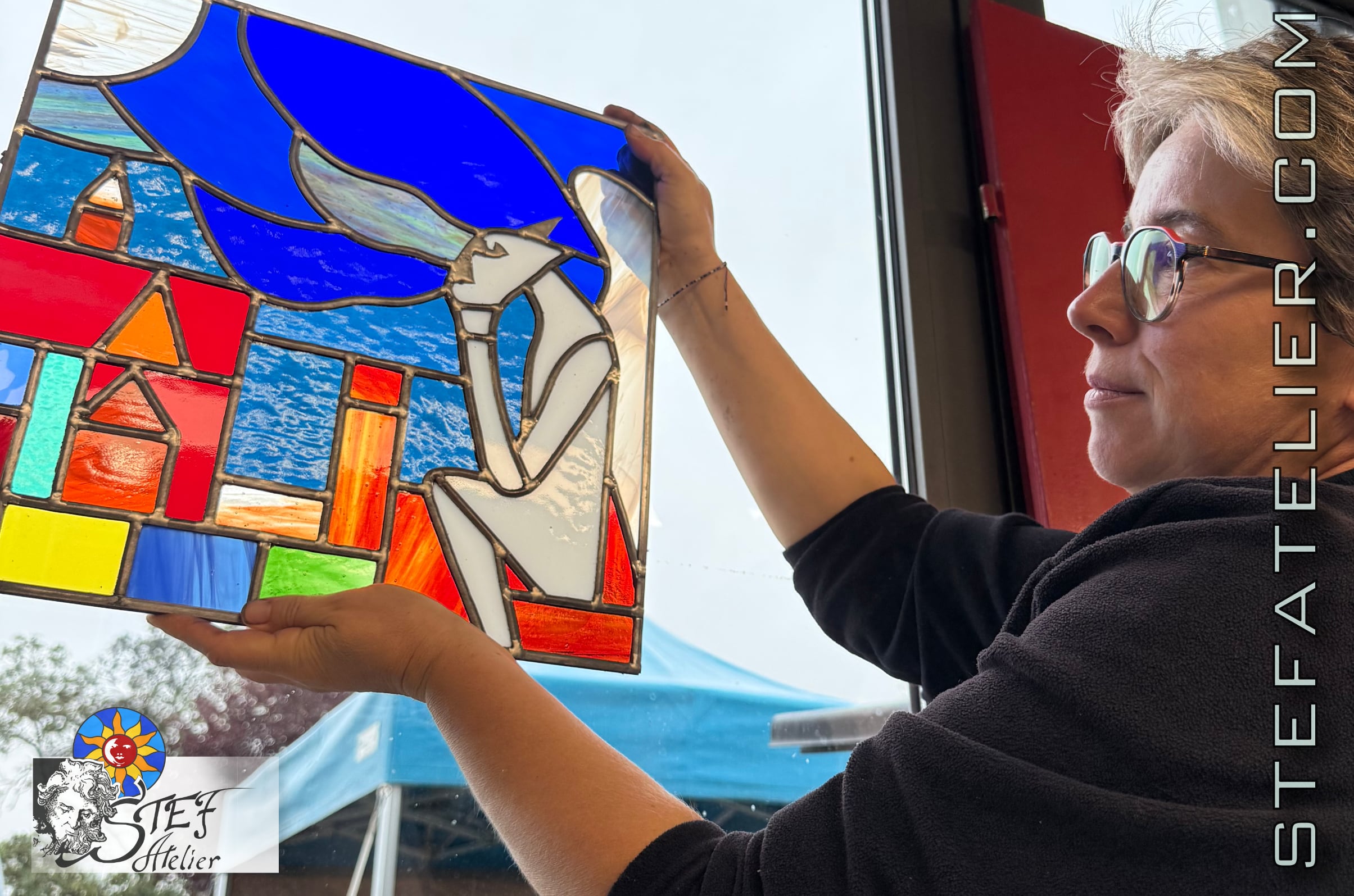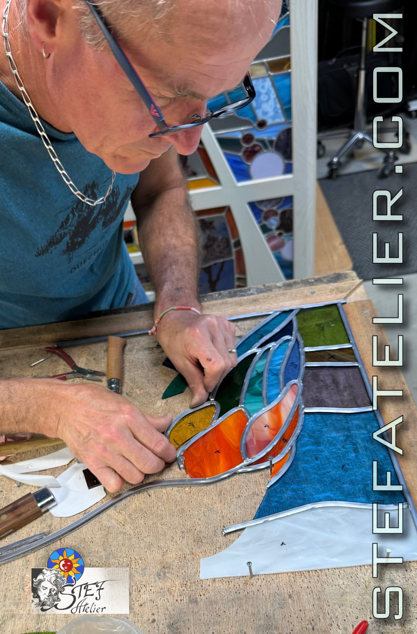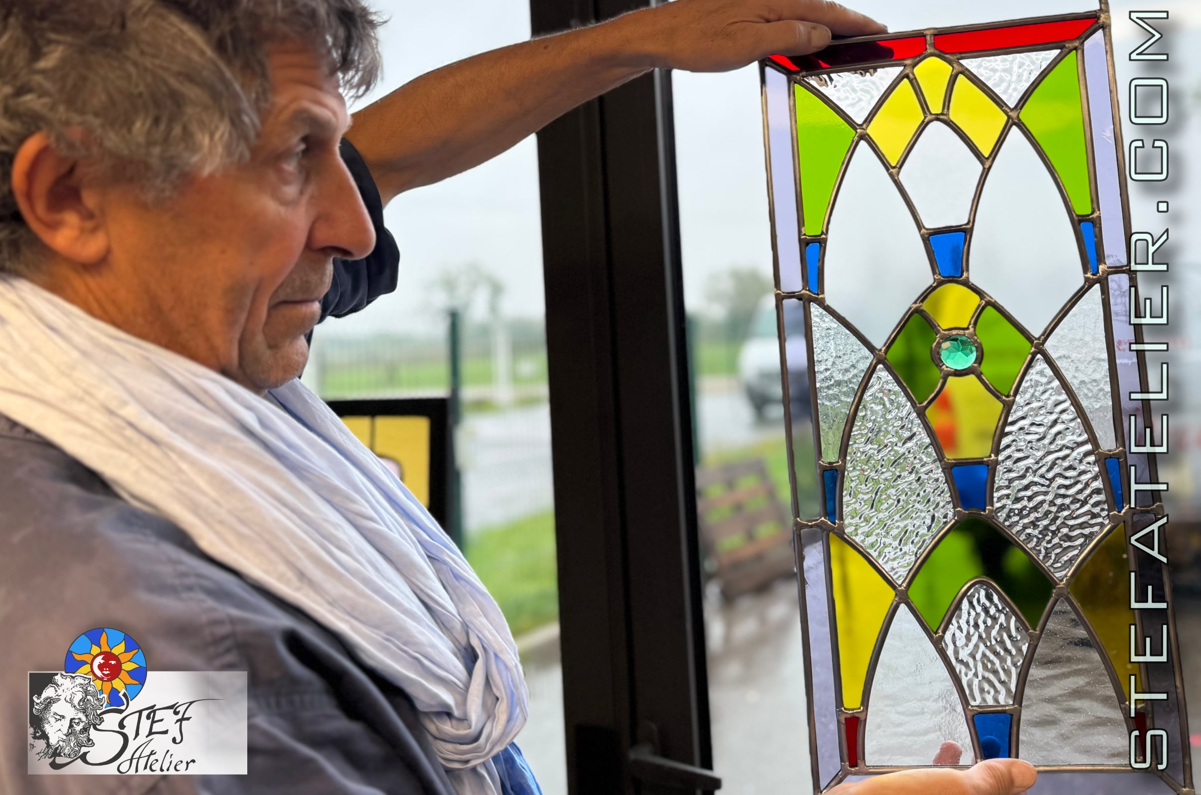 Plongez dans l’art du vitrail : durant nos stages, vous imaginez et esquissez votre création, découpez vos verres colorés, puis leur donnez vie en les assemblant au plomb.